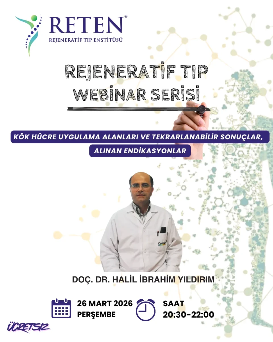 Sağlık profesyonellerine yönelik hazırlanan bu webinar, kök hücre uygulamaları, rejeneratif tedaviler ve klinik başarı oranları üzerine güncel ve bilimsel bir perspektif sunarak mesleki gelişime katkı sağladı.