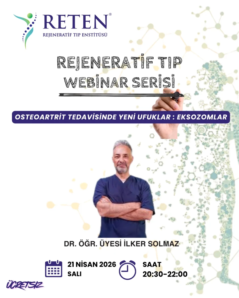 Webinar serimiz kapsamında gerçekleştirilen bu oturumda, Dr. Öğr. Üyesi İlker SolmazOsteoartrit Tedavisinde Yeni Ufuklar: Eksozomlar” başlıklı sunumuyla katılımcılarla buluştu.