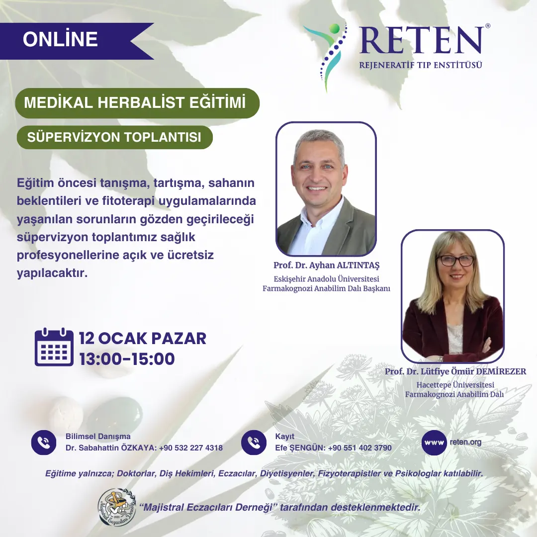 Eğitim öncesi tanışma, tartışma, sahanın beklentileri ve fitoterapi uygulamalarında yaşanılan sorunların gözden geçirileceği süpervizyon toplantımız sağlık profesyonellerine açık ve ücretsizdir.