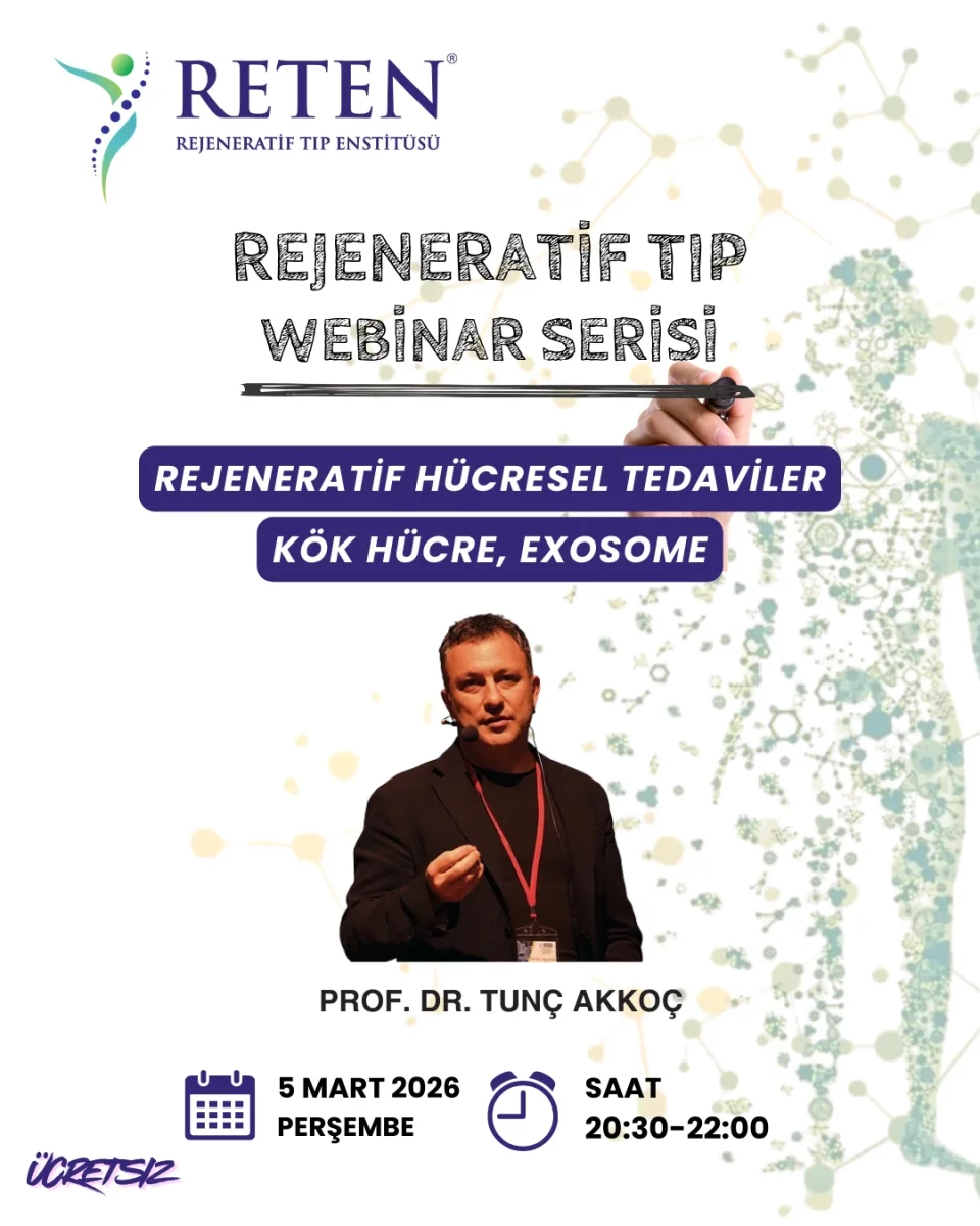Rejeneratif Tıp Webinar serimiz kapsamında gerçekleştirilen bu oturumda Prof. Dr. Tunç Akkoç, “Rejeneratif Hücresel Tedaviler: Exosome ve Kök Hücre” başlıklı sunumuyla katılımcılarla buluştu.